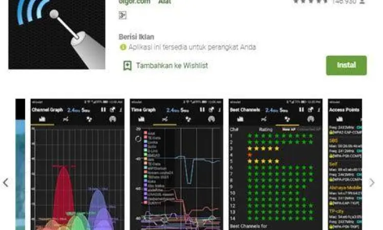 | WiFi Analyzer | Grafik kekuatan sinyal & channel | Android | Menengah |