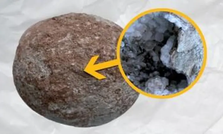 Telur dinosaurus yang ditemukan di situs fosil di China ini memiliki ukuran sebesar jeruk bali. Para paleontolog terkejut menemukan kristal kalsit berkilauan di dalam telur tersebut, yang menyerupai geode alami.