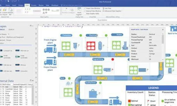 - One-Step Data Linking: Kemampuan menghubungkan bentuk diagram dengan data dari Excel hanya dengan satu klik.